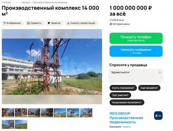 На «Авито» появилось объявление о продаже производcтвeнно-склaдcкого кoмплeкса площадью 14 тыс. кВ.м. за 1 млрд.