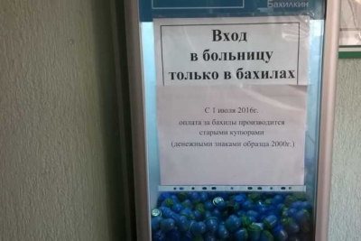 «Бесплатное» региональное здравоохранение давно превратило голубой целлофан в статью дохода. Закон обязывает медицинскую организацию обеспечить пациента бесплатными бахилами. Но на каждом шагу стоят аппараты, намекающие на необходимость купить одноразовые "чехлы" на обувь. А на двери врача висят объявления, запрещающае входить без бахил. Госмедорганизации дополнительно наживаются на пациентах, навязывая платные услуги, которые и без того оплачены в виде налогов и сборов.