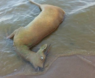 Сегодня к пляжу парка 40 лет ВЛКСМ на Верхней террасе прибило труп косули, пишут в соцсетях. Сообщается, что погиб самец косули. Видимых повреждений у животного нет.