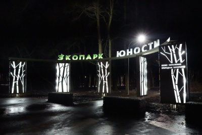 Городская администрация сообщает, что парке Юности, который расположен на севере Ульяновска, установили новую современную входную группу с подсветкой.