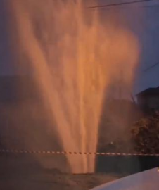 На опубликованных в социальных сетях кадрах видно, что в асфальте образовался большой провал, и из-под земли хлещет вода.