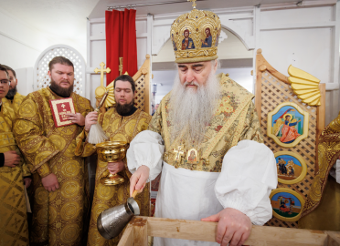 Храму митрополит Лонгин передал копию иконы Собора Симбирских святых и литургический комплект покровцов.