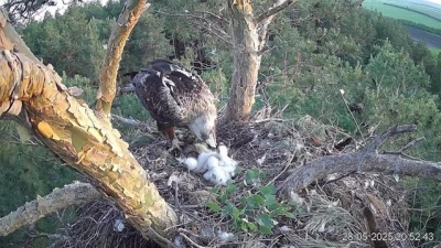 Он рассказал, что в течение трёх последних недель орлы готовили гнездо к появлению потомства. В апреле орлица снесла три яйца. Сейчас орнтологи наладили трансляцию, и все желающие могут продолжить наблюдение за жизнью солнечных орлов.