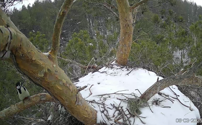 - До прилёта солнечных орлов ещё далеко, но уже сейчас на гнезде можно наблюдать различных птичек. За один день в кадре отметились сойка, большой пёстрый дятел и орлан-белохвост, - рассказал Корепов.