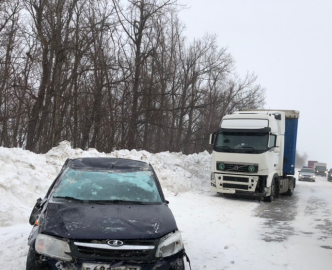 По информации ГИБДД, 21 февраля в 09.45 на 58 км 800 м трассы «Ульяновск – Димитровград – Самара» 46-летний водитель автомобиля ВАЗ 219010 не выбрал безопасную скорость, не справился с управлением, и машина опрокинулась на проезжую часть прямо под колеса большегруза «Вольво FH» с полуприцепом.