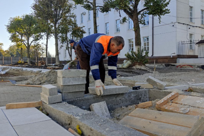 Завершают устройство тротуаров в Театральном сквере Ульяновска, где при сооружении траншей под прокладку сетей водоснабжения и водоотведения нашли остатки здания XVIII века. Из-за этого работы были приостановлены на время археологического исследования местности.
