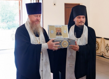 Перед началом богослужения духовенство и прихожане встретили в соборе ковчег с частью мощей святой блаженной Матроны Московской — одной из наиболее почитаемых русских святых XX века.