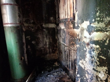 К прибытию первых пожарно-спасательных подразделений наблюдалось загорание вещей на площадке третьего этажа.