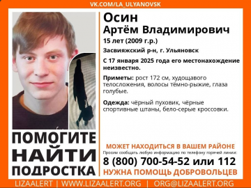 Напомним, 15-летний Артём Осин ушел из дома 17 января, его разыскивают, но пока безрезультатно.