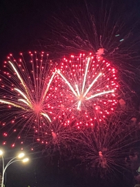 Ваша Даша прямо сейчас ведёт трансляцию праздничного салюта. Многие жители города так и не смогли добраться до Обелиска, но они не лишены зрелища — масштабный фейерверк отлично видно по улице Гончарова.