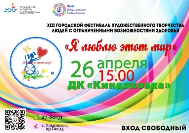 26 апреля в 15.00 в ДК «Киндяковка» состоится гала-концерт фестиваля художественного творчества людей с ограниченными возможностями здоровья «Я люблю этот мир».