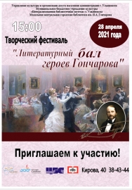 28 апреля в 15:00 в модельной центральной городской библиотеке им. И.А. Гончарова (ул. Кирова,40) пройдет традиционный творческий фестиваль «Литературный бал героев Гончарова».