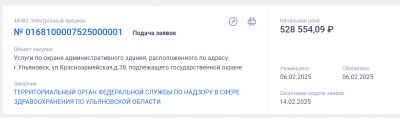 Начальная цена — 528 554. За эту сумму охраннику предстоит с понедельника по пятницу по установленному графику контролировать проход людей в здание. Контракт заключается с марта по октябрь 2025 года.