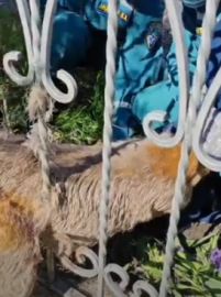 Сотрудники Управления гражданской защиты Ульяновска оперативно приступили к работе. Они осторожно обездвижили животное, накрыли его голову покрывалом и с помощью аварийно-спасательного инструмента освободили козла из ловушки.