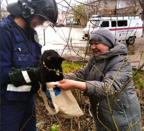 Дежурная смена с помощью трехколенной лестницы бережно сняла кота с опасной высоты, вернув его обратно на землю целым и невредимым.