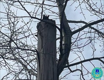 Местные жители обеспокоились тем, что в сквере Средний Венец пятые сутки сидит на дереве кот, и решили, что бедняжке требуется помощь, однако зверь считал иначе.