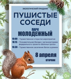 Сегодня, 8 апреля, в парке «Молодёжный» пройдет экологический праздник «Пушистые соседи», организованный в рамках федерального проекта «Беличья тропа».