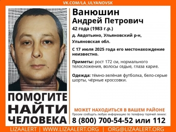В Ульяновской области 17 июля пропал 42-летний житель деревни Авдотьино Андрей Ванюшин.
