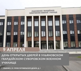 Региональное министерство просвещения и воспитания сообщает, что 9 апреля в 15:00 состоится День открытых дверей в Ульяновском гвардейском суворовском военном училище, которое находится по адресу: улица Героев Гостомельского десанта, д. 1.