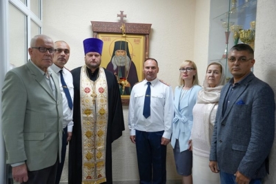 Помощник начальника УФСИН России по Ульяновской области по работе с верующими протоиерей Святослав Еренков совершил чин освящения иконы, провел молебен, по окончании которого сотрудники УФСИН смогли приложиться к святому образу.