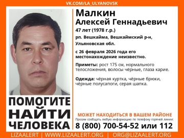 47-летний Алексей Малкин пропал 26 февраля 2026 года в Вешкайме.