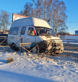 О происшествии очевидцы сообщают в социальных сетях. Водитель маршрутки пытался уйти от столкновения с легковым автомобилем и врезался в забор.