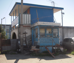 Сооружение из железобетонных плит и панелей с металлической надстройкой, а также ограждение самовольно установлены западнее дома №5-а по улице Отрадной. Объект используется в качестве помещения охраны несанкционированной парковки.