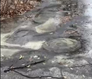 Горожане пожаловались в соцсетях, что вода, которая течет прямо из-под крышки колодца, заливает асфальт.