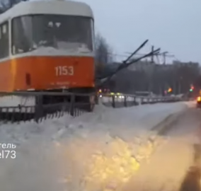 Сегодня утром, 27 января, в Засвияжском районе Ульяновска трамвай сошёл с рельсов, врезался в столб и повалил его, сообщают очевидцы в соцсети.
