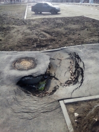 Провал случился около гипермаркета «Лента» на проспекте Созидателей. В результате там образовалась огромная яма, фотографию которой горожане разместили в группе «ВК».