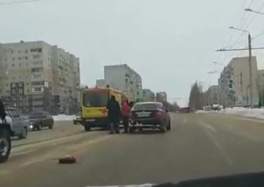 Сегодня утром рядом с пешеходным переходом на проспекте Сурова в Ульяновске сбили человека, сообщают очевидцы.
