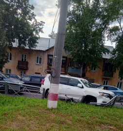 ДТП произошло сегодня вечером рядом с парком «Винновская роща». Водитель автомобиля Toyota Land Cruiser не справился с управлением и въехал в дорожное ограждение.