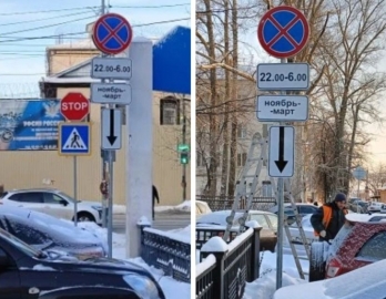 Такие знаки появились вдоль сквера Строителей на участке дороги от 12 Сентября до дома №6 по улице III Интернационала. Период их действия ноябрь-март.