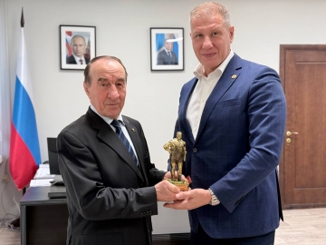 Они пожелали ему успехов, сил и здоровья в будущей работе, а первый Олимпийский чемпион за всю историю Ульяновской области Виталий Константинов вручил Цуканову статуэтку великого и непобедимого борца Ивана Поддубного, символизирующего силу, мощь, характер и дух бойцовский.