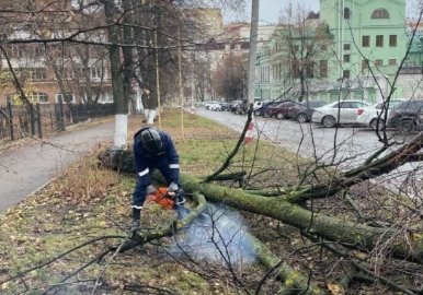 Городская администрация сообщает, что сегодня утром, 5 ноября, в центре Ульяновска сотрудники Управления гражданской защиты распилили упавшее дерево.