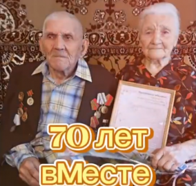 Владимир Александрович (1929 года рождения) и Клавдия Фёдоровна (1931 г.р.) вместе живут 70 лет. Это благодатная свадьба.