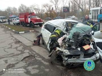 Прибывшие на место спасатели с помощью аварийного инструмента извлекли пострадавшего водителя из машины и передали сотрудникам скорой помощи.