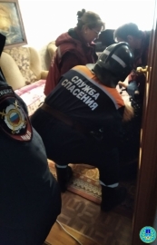 Прибывшие на место спасатели Управления с помощью специального инструмента в присутствии родственников и сотрудников полиции открыли дверь, где на полу обнаружили хозяйку квартиры в сознании.