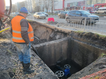 Сейчас заменено 30 метров стальной трубы на полиэтиленовую диаметром 300 мм под дорогой в футляре. Кроме того, завершаются работы в камере по замене запорной арматуры.