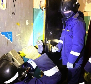 Прибывшие на место спасатели в присутствии родственников вскрыли дверь, используя специальный инструмент.