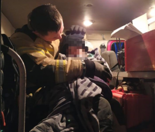 Пожарные обследовали задымленную квартиру и обнаружили двух спящих человек - женщину и ребенка. Их вынесли на улицу и передали в руки медикам.