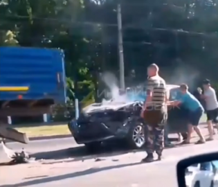 По информации очевидцев, иномарка летела на большой скорости и буквально впечаталась в грузовик. Водителя пришлось доставать из покорёженной машины.