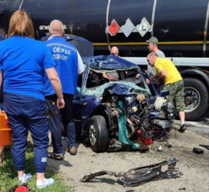 По словам свидетелей ДТП, «Фольксваген» вылетел на встречную полосу и попал под фуру. Легковой автомобиль буквально разорвало, говорят очевидцы: кругом осколки битого стекла.