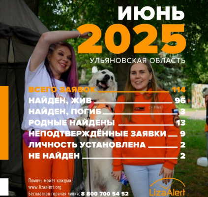 В июне в отряд поступило 114 заявок на поиски 125 человек по Ульяновскому региону – 77 мужчин и 48 женщин.