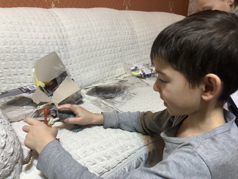 Первое письмо написано нескладным детским почерком. 8-летний Али попросил у Деда Мороза коллекцию динозавров — это одно из главных увлечений школьника. Другие ребята тоже получили подарки по своим интересам.