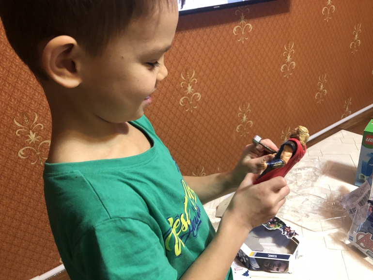 Мальчики, как и хотели, получили наборы с супергероями и динозаврами. Девочкам Дед Мороз передал конструкторы и популярные настольные игры. «Дженге» обрадовались даже самые маленькие. Пока мы общались со взрослыми, ребята распаковали подарки и начали играть. По залу летал Железный человек, на диване паслись доисторические динозавры, тут же собирался новый парк аттракционов.