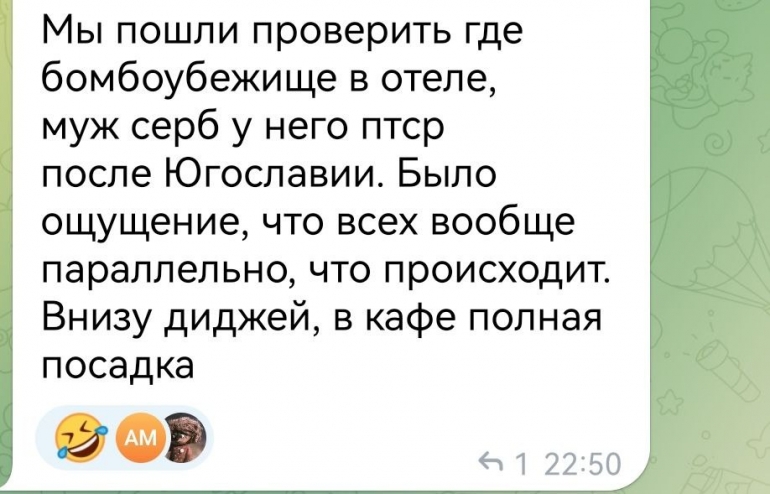 Напомним, что сейчас в Дубае находится семья Александра и Насти Чепухиных. Они передают, что в их районе обстановка спокойная.