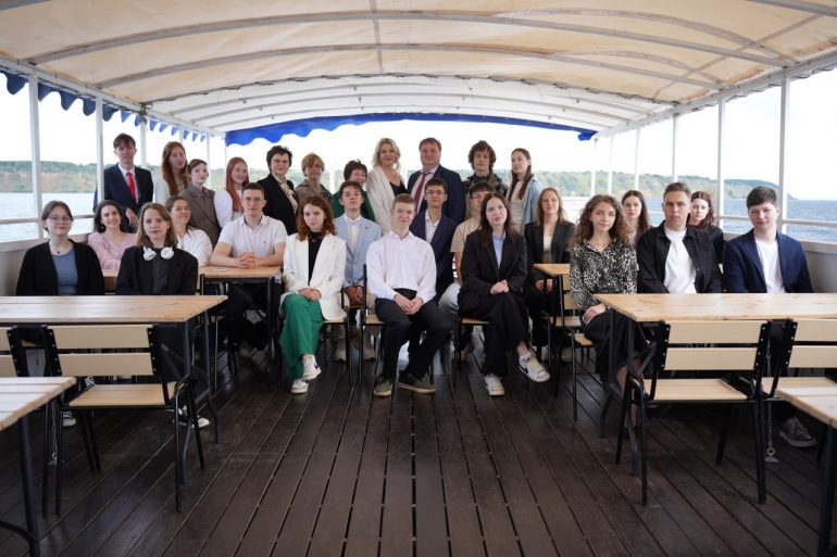 Глава Ульяновска Александр Болдакин встретился с ульяновскими выпускниками, показавшими высокие результаты на ЕГЭ, и прокатился с ними на теплоходе по Волге.