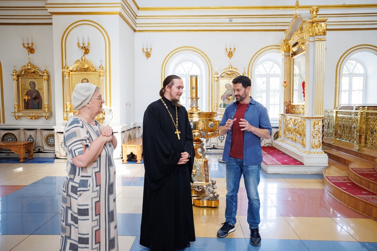 Ведущий программы актер театра и кино Антон Макарский вместе с командой за несколько дней посетили Спасо-Вознесенский кафедральный собор, некрополь Покровского мужского монастыря, Воскресенско-Германовский храм, Спасский женский монастырь и храм в честь Воскресения Христова.