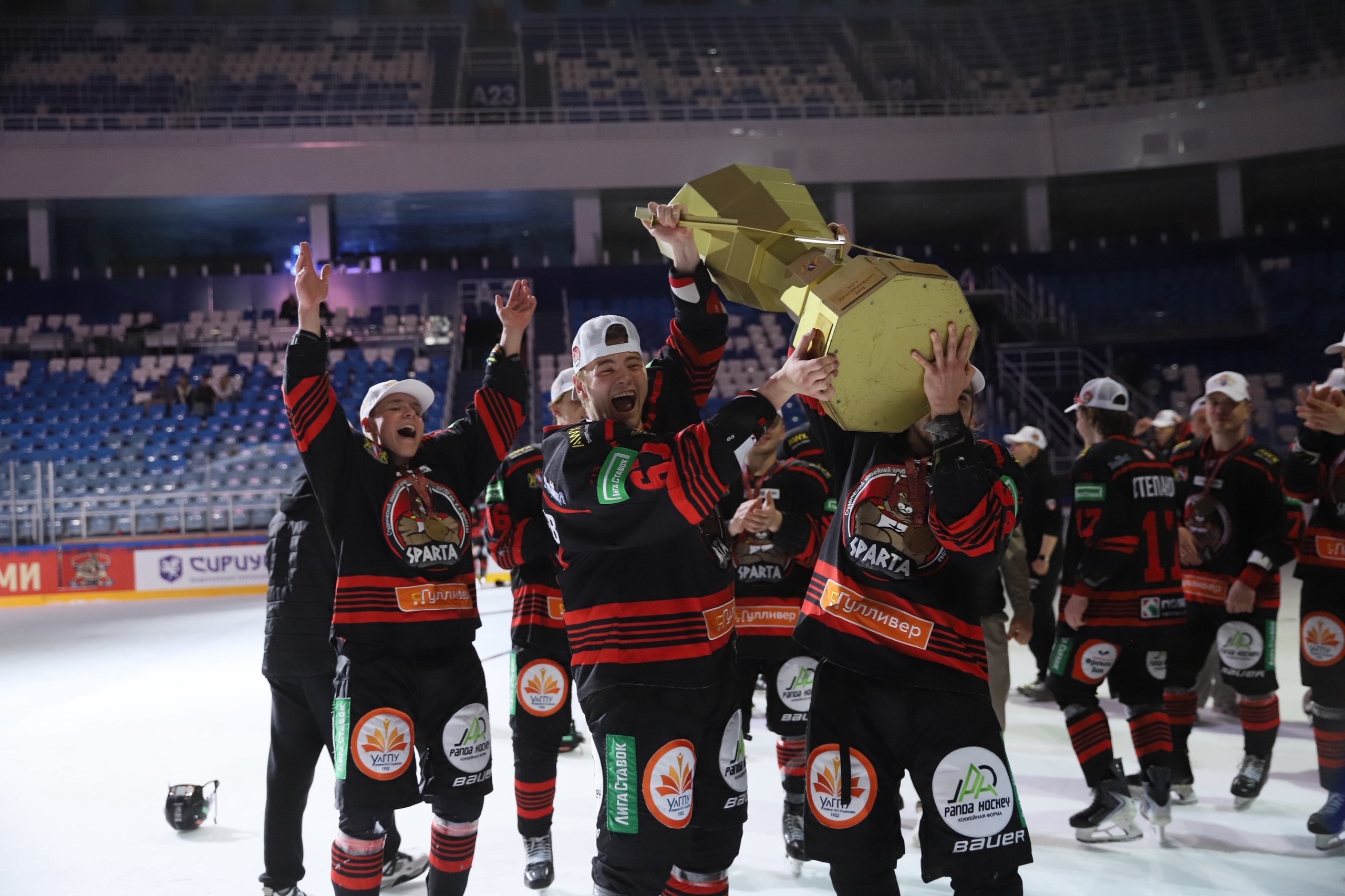 Напомним, ранее хоккейная команда «Спарта» впервые в своей истории стала победителем чемпионата СХЛ. Решающие игры проходили в сочинском ледовом дворца «Айсберг». В финальном матче спартанцы одолели сборную Российского Государственного Социального Университета со счетом 3:2. Чемпионский кубок ульяновцам вручил олимпийский чемпион, неоднократный чемпион мира Владислав Третьяк.